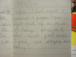 Questions on the card are all related to the stories and the chairs they made. Along the lines of "which is you favourite character in your story and why?" "what have you learned from this project?" "what would you have done differently if you can do it again?" etc. Lame, right? But most parents seemed to be religiously following them to the dot. I had already read O's story before so there was nothing new for me. Despite all this, I wouldn't call the visit a complete waste of time, since I discovered for the first time that the kids each have a "playtime journal", where they are supposed to write about what happened at break time. And I read some of O's entries: